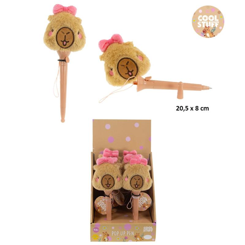 Morsom pop-up penn med søt capybara i plysj på toppen. Trykk på knappen – så spretter figuren opp! Perfekt som liten gave, samleobjekt eller en gøyal detalj i pennalet.