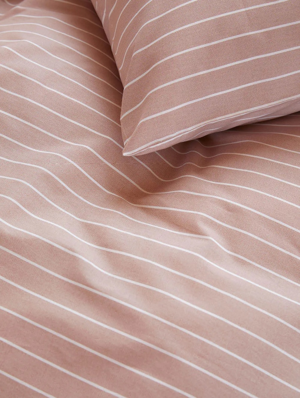 Pia i varm rosa passer perfekt for deg som ønsker et soverom med en myk, feminin og innbydende atmosfære. Den varme rosatonen kombinert med klassiske, hvite striper gir rommet et harmonisk uttrykk – lyst, men samtidig lunt. Den myke bomullen er kjent for sin gode komfort og høye slitestyrke, og føles behagelig mot huden natt etter natt. Sengesettet har bunnåpning med glidelås og Easy Care-behandlingen gjør at sengesettet krøller mindre og holder seg pent lenger – ideelt for en travel hverdag hvor du fortsatt vil ha det fresht og innbydende. Et perfekt valg for deg som vil kombinere komfort, kvalitet og klassisk design. Introduksjonstilbudet varer til og med 17.08.25. Pris etter kampanje fra 499,-
