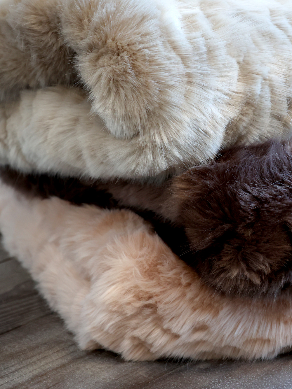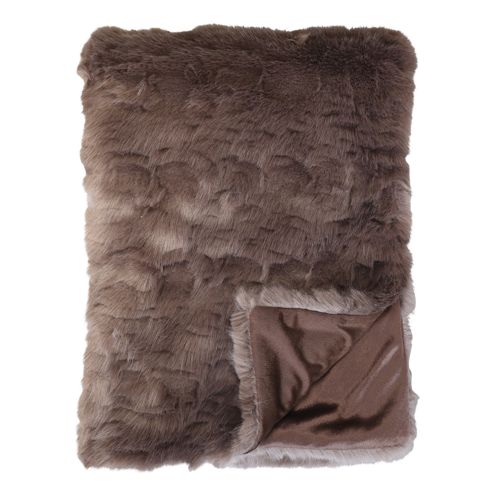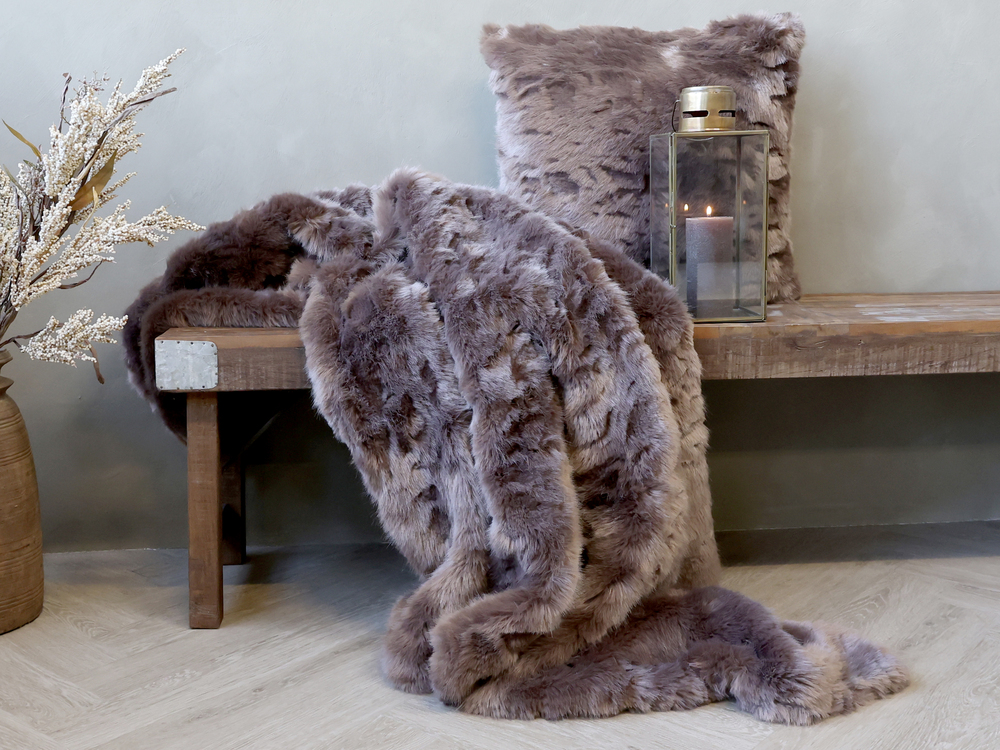 Pledd i imitert skinn. Chokolade