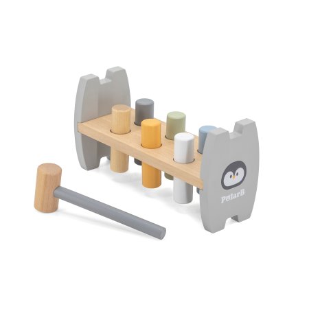 PolarB bankebenk i tre. Benken har 6 sylindere i forskjellige farger som kan bankes ned med den medfølgende trehammeren. Snu benken og bank de igjen.