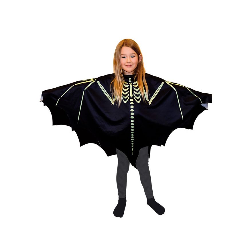 Stilig poncho som ligner en flaggermus med selvlysende skjelettprint. Perfekt til halloween og utkledning.