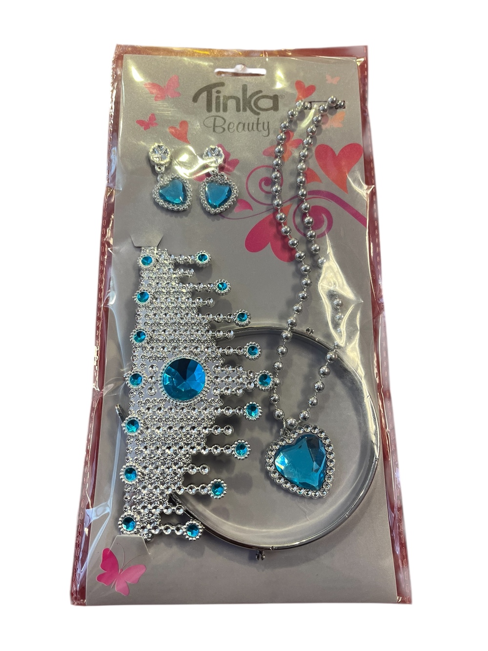 Prinsessesett Tiara, Kjede og Ørepynt Blå