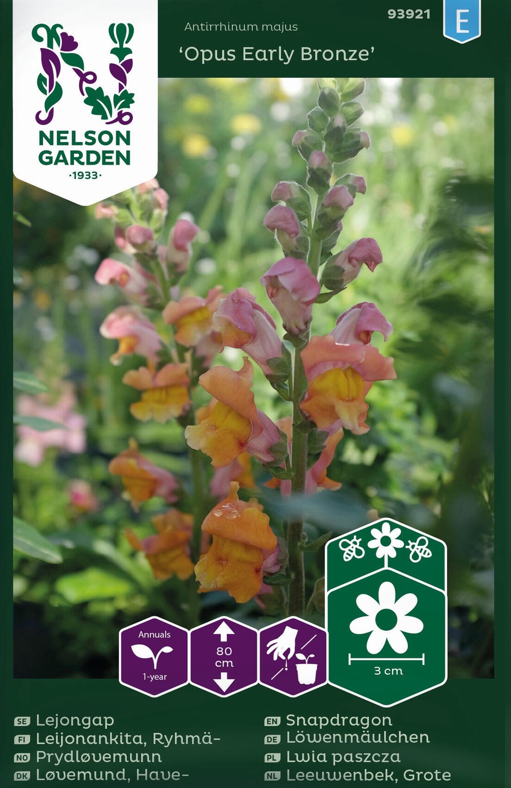 Prydløvemunn 'Opus Early Bronze' i vakker oransje, egnet til snitt. Et sjarmerende innslag i det fargerike bedet og praktfull i buketten. Blomstrer hele sesongen.
