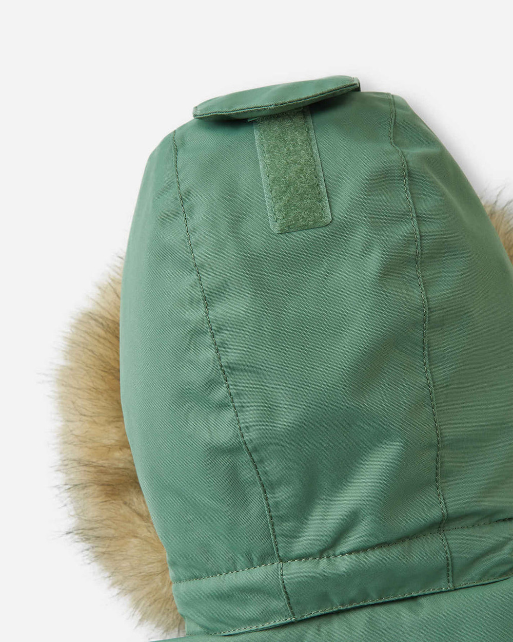 Sikker, avtakbar og regulerbar hette med avtakbar fuskepelskant