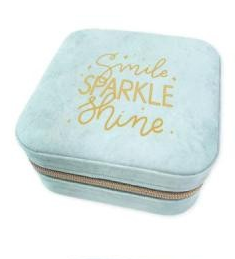 Søte reisesmykkeskrin fra Tinka Beauty. Ta med deg smykkeskrinet på reise. Nydelig myk velour med gulltrykk. 10,3 x 10,3 x 4,6 cm