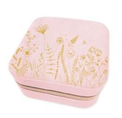 Søte reisesmykkeskrin fra Tinka Beauty. Ta med deg smykkeskrinet på reise. Nydelig myk velour med gulltrykk. 10,3 x 10,3 x 4,6 cm