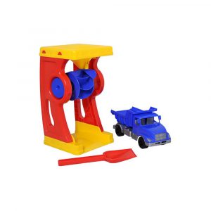 Alt du trenger for en vellykket dag på stranda. Sand- og vannhjul, bil og spade
