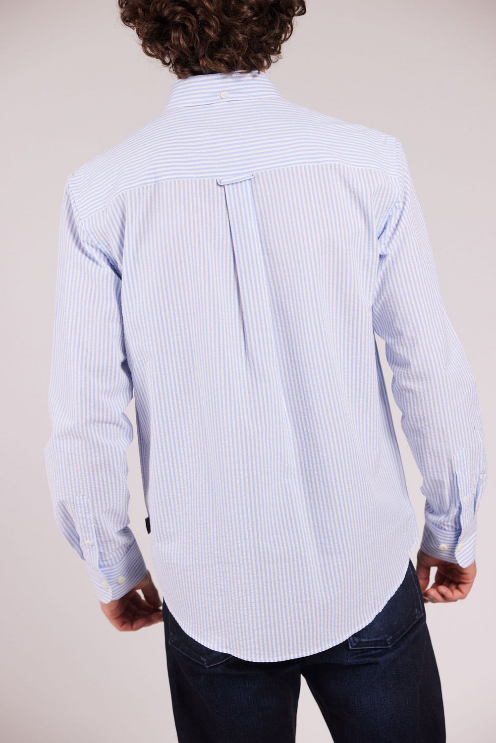 Benkelegg i ryggen med...Seersucker BD Skjorte Lyseblå.Klassisk seersucker-skjorte med normal passform. Krage med knapper.