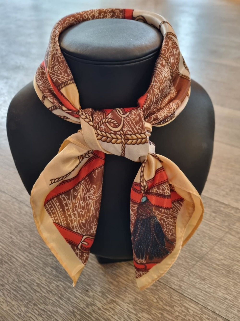 Silkeskjerf i mange farger og mønster. Fint tilbehør til både barne og dame festdrakt og bunad. Kjempefin til hverdag og fest. 60x60 cm Polyester/Satin.
