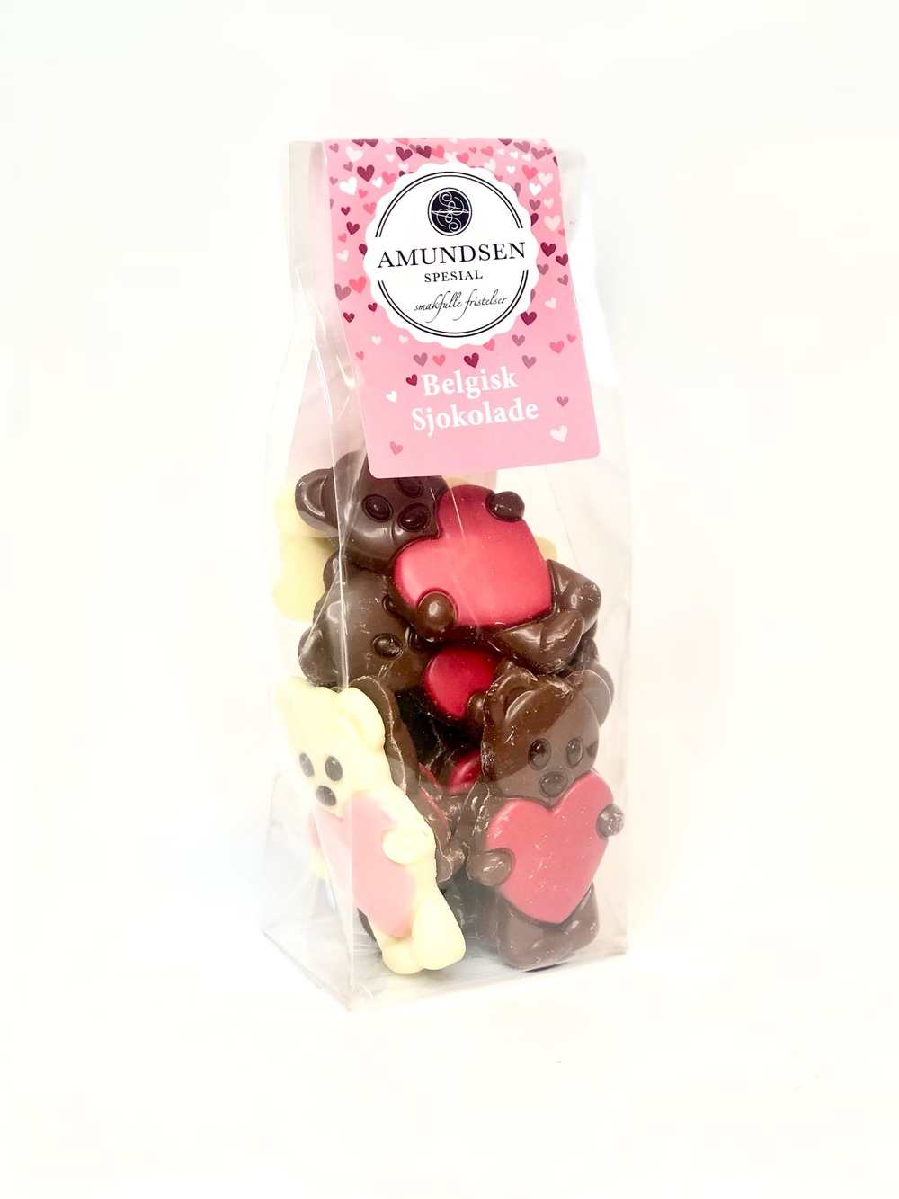 Møt våre uimotståelige sjokolade-teddybjørner, som hver holder et lite hjerte fylt med kjærlighet. Disse bedårende bjørnene er den perfekte måten å vise...Si det med sjokolade!