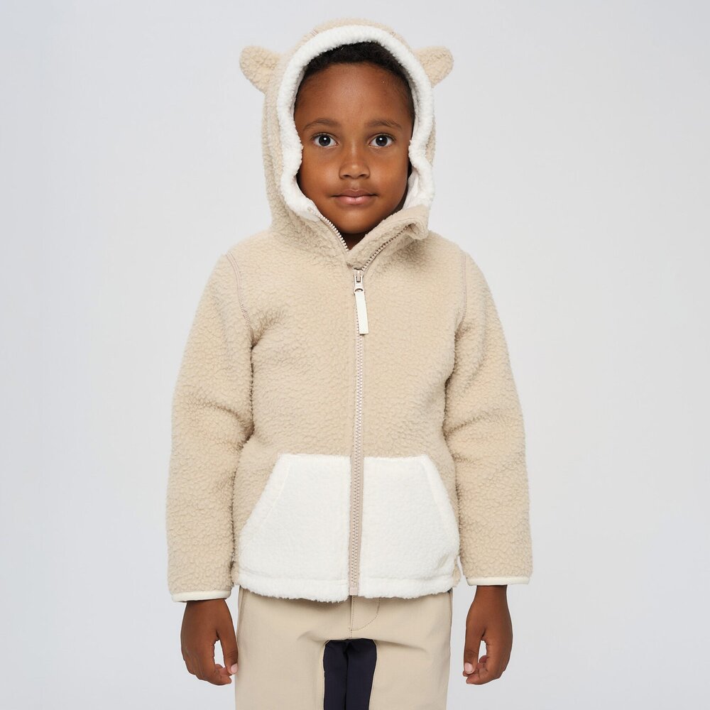 Denne fleecefavoritten er en supermyk jakke i tykk og deilig pilefleece laget av 100 % resirkulert polyester. Den er antinuppebehandlet og holder seg fin, selv etter mye lek og bruk. Den rette passformen gjør jakken behagelig å bevege seg i, og den faste hetten med søte bamseører og hakebeskytter sørger for optimal varme og komfort.