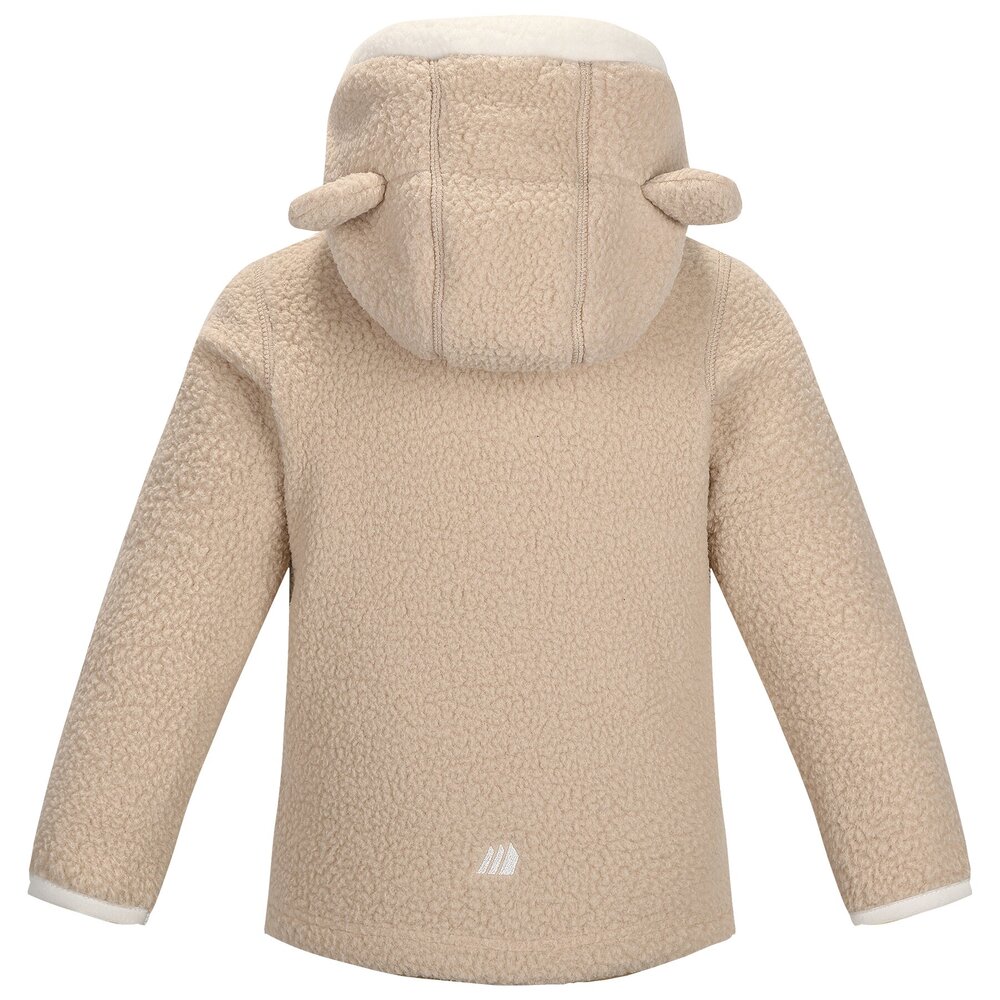 En...En myk pilefleece-jakke som holder barna varme gjennom sesonger. Den har en søt hette med små bamseører og en litt forlenget rygg for ekstra komfort.
