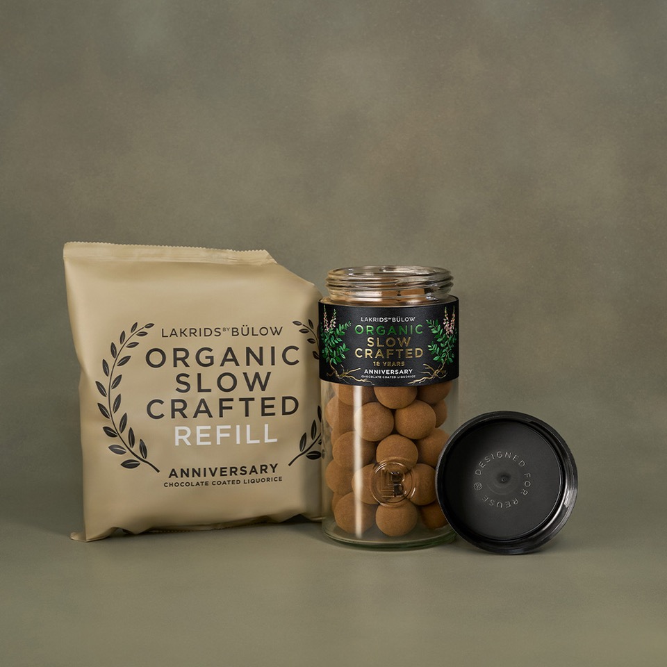 Til ANNIVERSARY er den opprinnelige oppskriften oppdatert til en helt økologisk variant for å feire 18-årsjubileet til LAKRIDS BY BÜLOW. Sett tennene i et tynt lag med fint lakrispulver, fyldig belgisk melkesjokolade og en SLOW CRAFTED-kjerne av myk lakris - alt laget utelukkende av økologiske ingredienser. Enkel, perfeksjonert og like vanedannende.Les mer