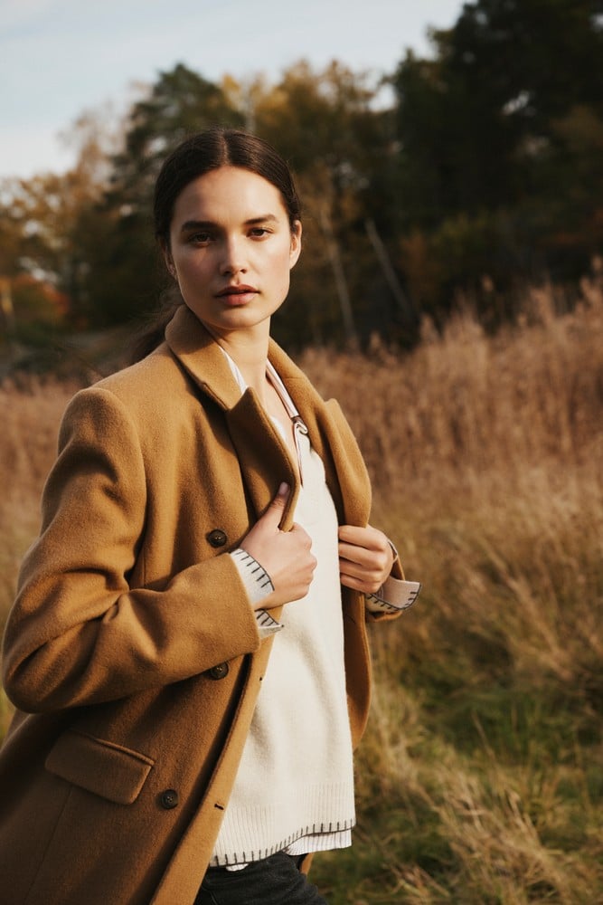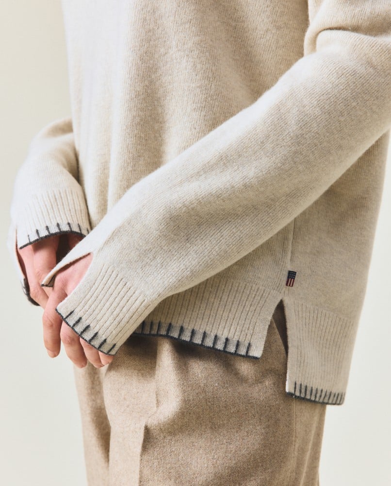 • Kontrasterende teppesøm ved ermer, nederkant og splitter