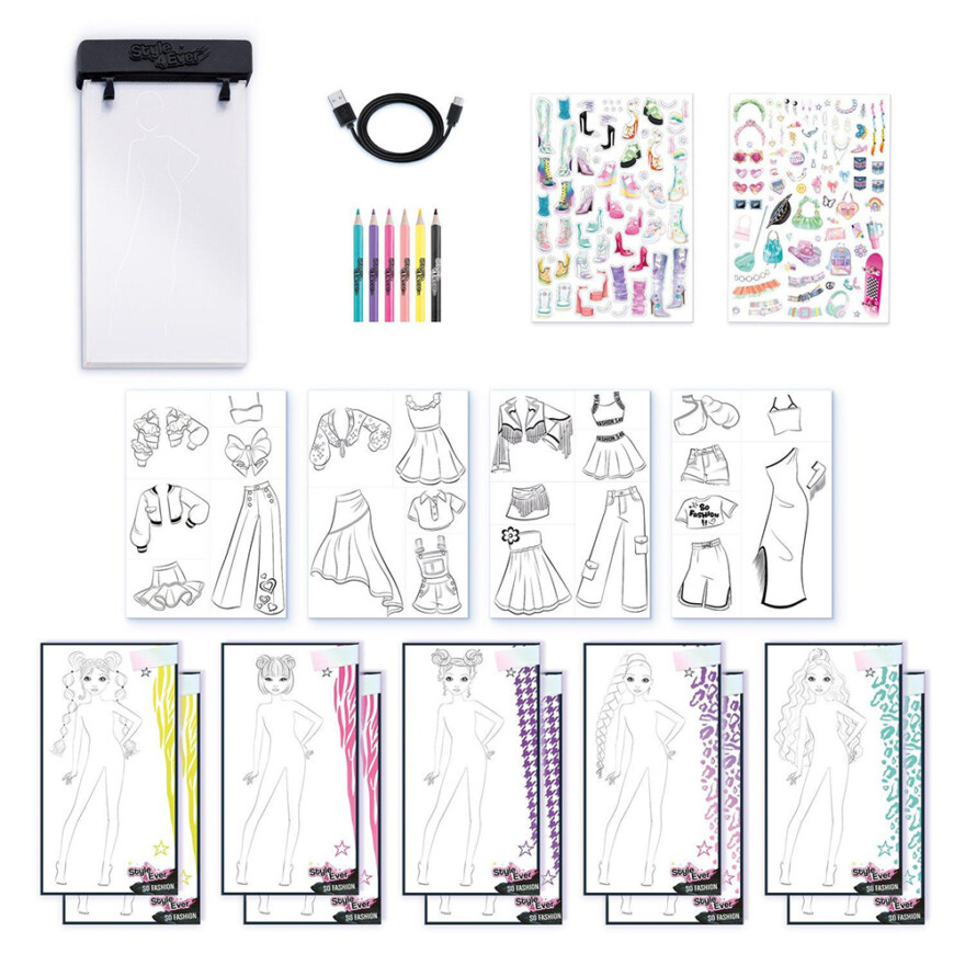 Slipp løs kreativiteten din med Style 4Ever Fashion Designer! Denne fantastiske fashion Light-up Pad lar barn fra 6 år og oppover designe sine egne stilige...Slipp løs kreativiteten din med Style 4Ever Fashion Designer! Denne fantastiske fashion Light-up Pad lar barn fra 6 år og oppover designe sine egne stilige antrekk. Med det medfølgende tilbehøret har det aldri vært enklere å lage mange forskjellige looks.