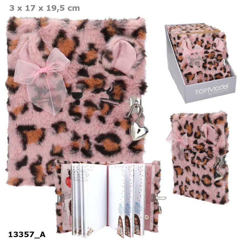 Skriv ned dine innerste tanker, drømmer og opplevelser på sidene i denne herlige dagboken fra TOPModel som inneholder 96 fint dekorerte sider. Dagbokens omslag er...Skriv ned dine innerste tanker, drømmer og opplevelser på sidene i denne herlige dagboken fra TOPModel som inneholder 96 fint dekorerte sider. Dagbokens omslag er laget av myk, imitert pels i rosa og brun med leopardmønster, og boka har et brodert katteansikt og søte, påsatte ører. I tillegg er dagboken forsynet med en søt hjerteformet lås og nøkler slik at du kan beskytte dine personlige minner mot nysgjerrigperer.Les mer