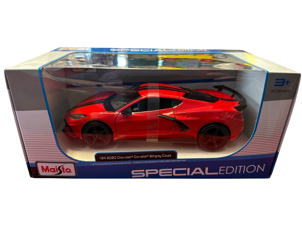 2020 chevrolet corvette stingray coupe modellbil i skala 1:24 fra Maisto. Denne detaljrike diecast-modellen gjenskaper nøye karosseriet til den originale bilen, med hver slanke kurve,...2020 chevrolet corvette stingray coupe modellbil i skala 1:24 fra Maisto. Denne detaljrike diecast-modellen gjenskaper nøye karosseriet til den originale bilen, med hver slanke kurve, linje og vinkel perfekt fremstilt. Den eksepsjonelle oppmerksomheten på detaljer strekker seg over hele chassiset og inn i interiøret, hvor hver eneste del er nøye gjengitt. En elektrostatisk lakkbehandling gir modellen den perfekte finishen.Les mer