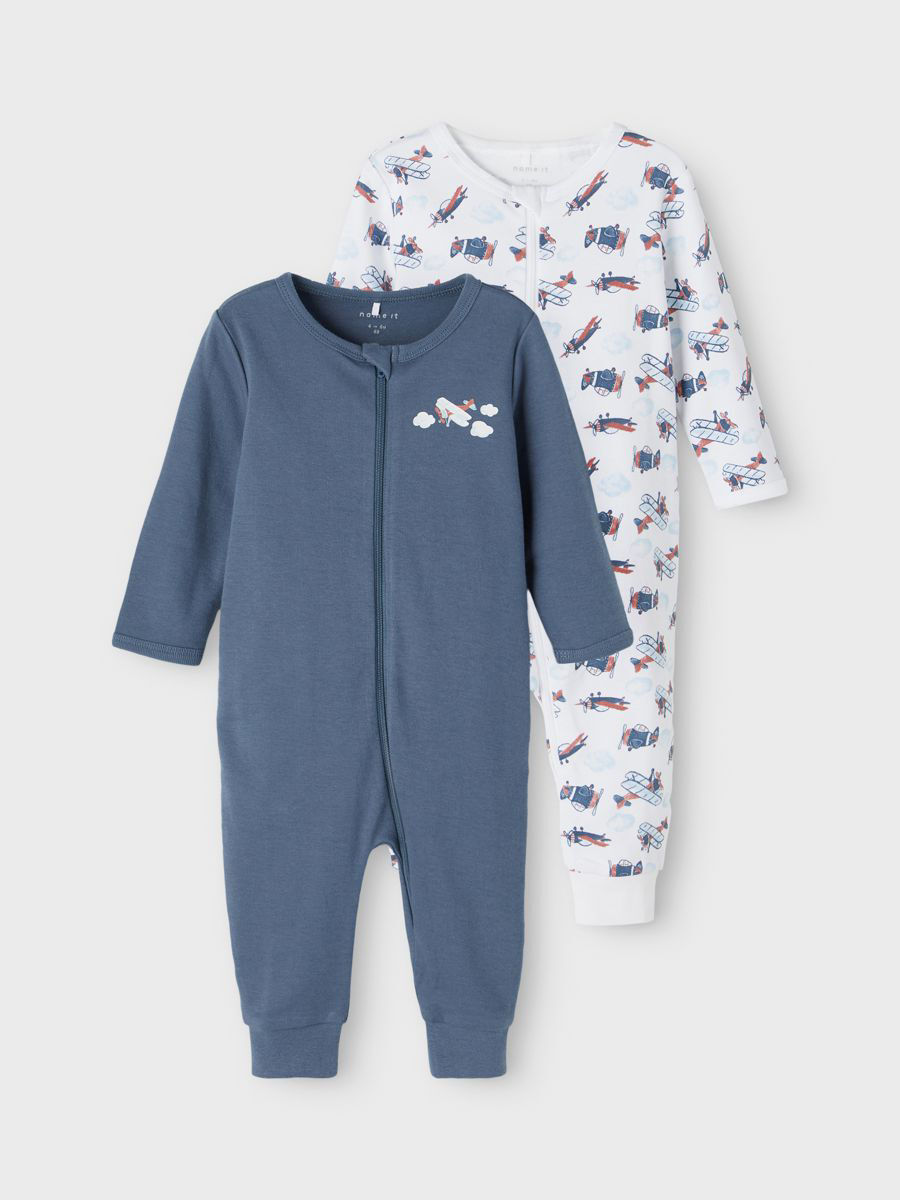 2-pk pysj uten fot. En med all over print, og en ensfarget med et lite print på brystet. Glidelås i front. Hakebeskytterm slik at glidelåsen...2-pk pysj uten fot. En med all over print, og en ensfarget med et lite print på brystet. Glidelås i front. Hakebeskytterm slik at glidelåsen ikke skraper på haken.