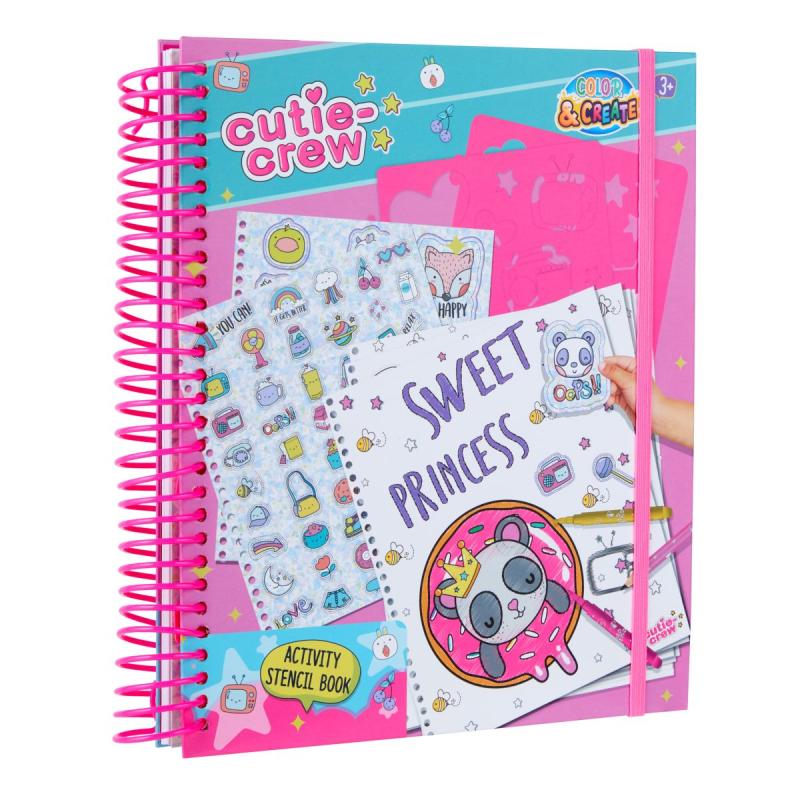 AKTIVITETSBOK MED STENCILER OG FARGEBLYANTER CUTIE CREW