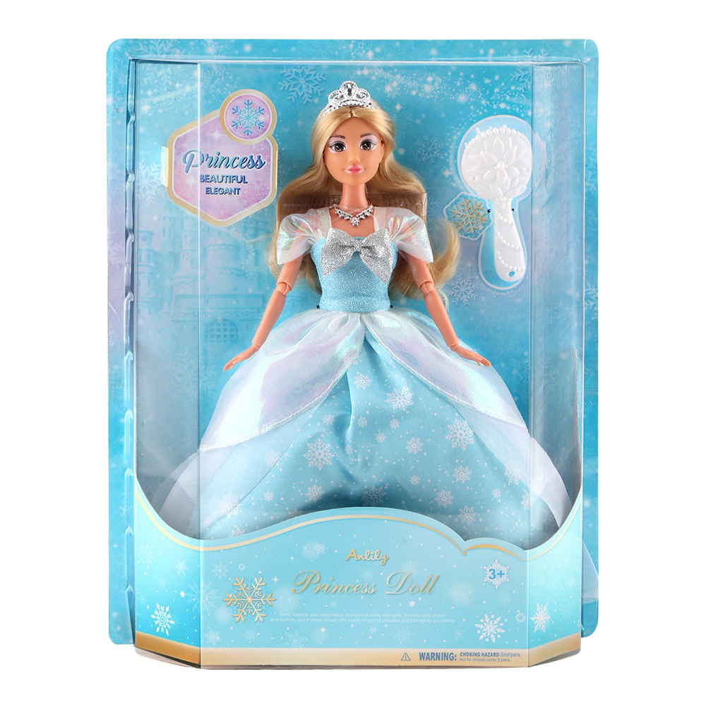 Møt Anlily – en nydelig prinsessedukke kledd i en glitrende blå kjole med snøfnuggmønster, tiara og smykke. Settet inkluderer også en hårbørste slik at barn...Møt Anlily – en nydelig prinsessedukke kledd i en glitrende blå kjole med snøfnuggmønster, tiara og smykke. Settet inkluderer også en hårbørste slik at barn kan stelle håret og gjøre henne klar for ball. Med elegante detaljer og en sjarmerende stil er denne dukken perfekt for barn som elsker prinsesser og fantasifull rollelek.