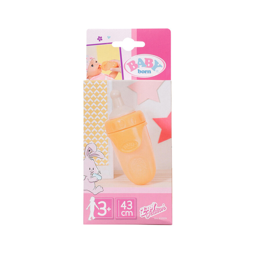 Disse fargerike flaskene ser ut som ekte tåteflasker med lokk som skjuler en drikketut under – perfekt for å mate BABY born. Fra utsiden ser...Disse fargerike flaskene ser ut som ekte tåteflasker med lokk som skjuler en drikketut under – perfekt for å mate BABY born. Fra utsiden ser det ut som flaskene inneholder fruktte, jordbærmilkshake eller appelsinjuice, men innholdet er en del av fantasien. Et høykvalitetstilbehør som gir variert og langvarig lek for barn fra 3 år.
