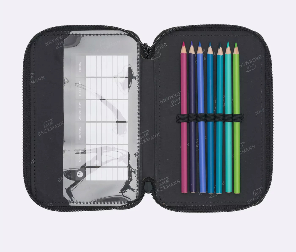 Pennalet er fullt av overraskelser, og inneholder selvfølgelig alt du trenger til skolen og leksene. Blyanter og fargestifter laget av FSC-sertifisert tre.