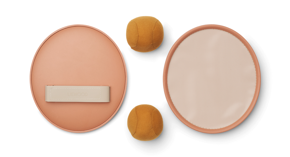 Artig utelek med gripespill fra Liewood. Platene har borrelås som ballen fester seg i når man tar imot.