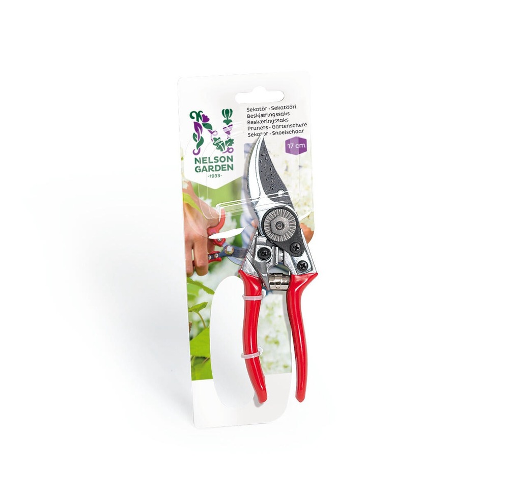 Praktisk blomstersaks til f.eks. potteplanter og busker. Utmerket modell for litt mindre hender. Skjær av teflonbelagt stål. Kapasitet 15 mm.