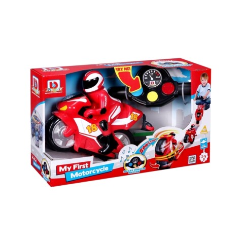 My First Motorcycle fra BB Junior vil være en hit hos de små. Motorsykkelen kan gjøre alle mulige kule triks! Du styrer bilen med fjernkontrollen....My First Motorcycle fra BB Junior vil være en hit hos de små. Motorsykkelen kan gjøre alle mulige kule triks! Du styrer bilen med fjernkontrollen. Trykk på den gule knappen for å gjøre triks, den røde for å snu til høyre og venstre og den blå knappen for å kjøre fram og tilbake. I tillegg lager motorsykkelen også morsomme lyder. Egnet fra 2-5 år.Les mer