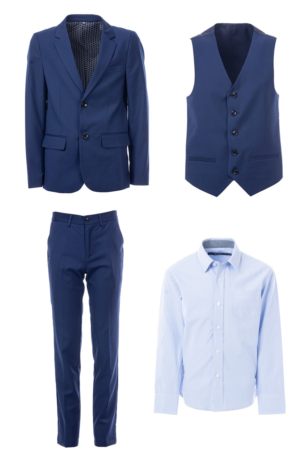 Dresspakke med komplett Bastian dress med bukse, vest og dressjakke. I tillegg valgfri skjorte. Fra 4-17 år. Slank passform. God ben lengte.