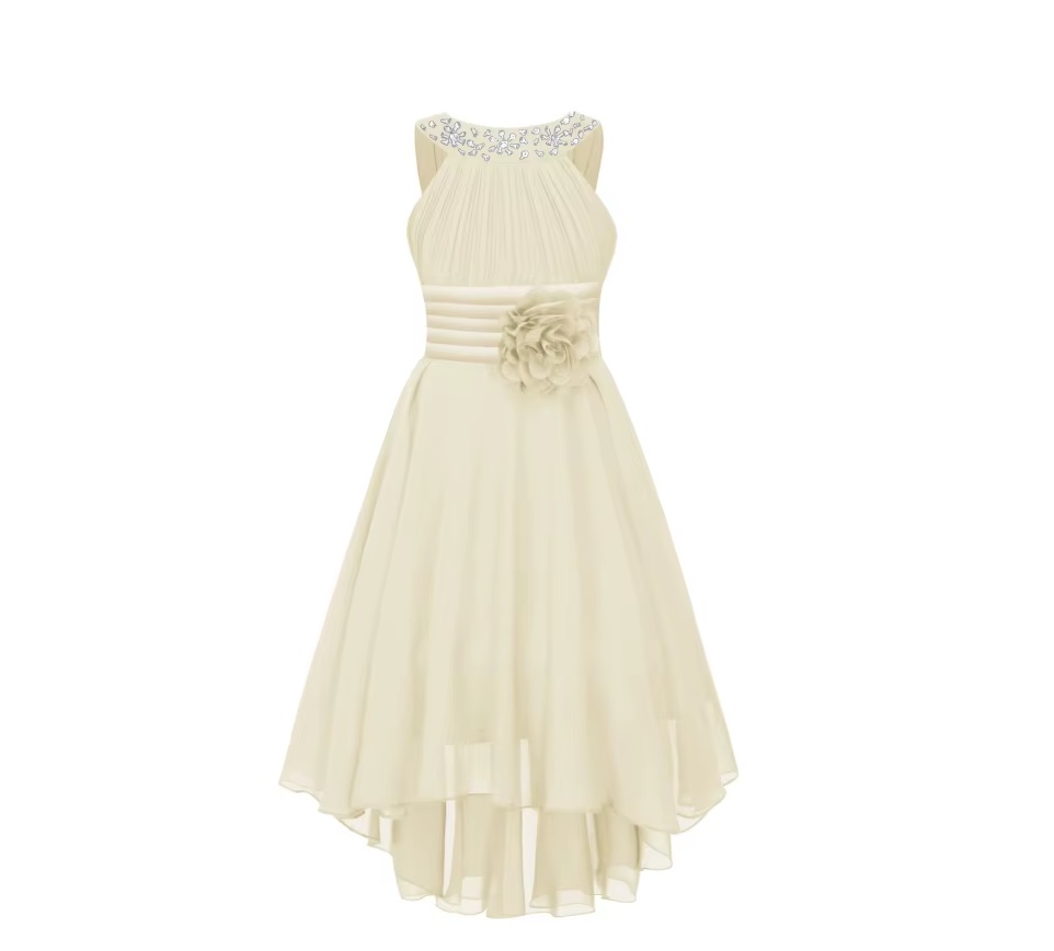Nydelig kjole til jente. Medium lengde. Drapperinger på overdel. Bred midje med fint snitt og glidelås bak og lett skjørt. Blomsten har sikkerhetsnål og kan...Nydelig kjole til jente. Medium lengde. Drapperinger på overdel. Bred midje med fint snitt og glidelås bak og lett skjørt. Blomsten har sikkerhetsnål og kan flyttes. Passer til anledninger som ball, bryllup, konfirmasjon, dåp eller når du skal være fin på en bursdag. 100% polyester. Vaskes skånsomt ved 30 grader. Les mer