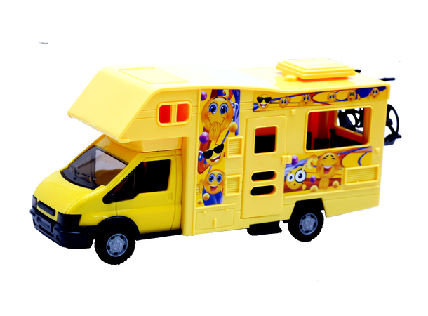 Stilig campingbil med flotte emoji-detaljer.