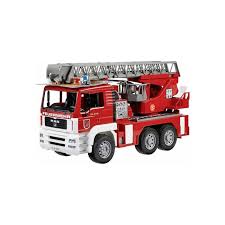 Bruder MAN brannbil med stige, vannpumpe, lys og lyd! Brannbilen har også førerhus som kan vippes frem, stigen og vannpumpen kan vippes til side slik...Bruder MAN brannbil med stige, vannpumpe, lys og lyd! Brannbilen har også førerhus som kan vippes frem, stigen og vannpumpen kan vippes til side slik at man får tilgang til motoren. Sidespeilene kan brettes inn og ut, og den integrerte vanntanken kan fylles med vann. Vannslangen rulles sammen og har en fungrende vannsprøyte i enden.