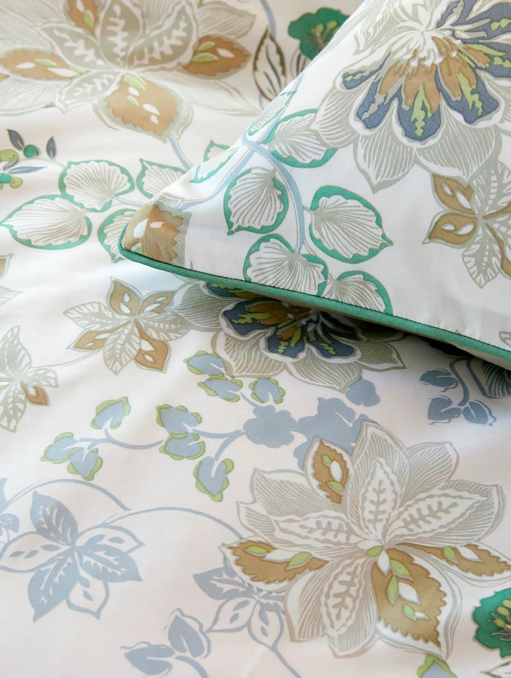 Cassandra sengesett i sateng er laget av ren bomull som er kjent for sine ekstra tynne og langfibrede tråder. Den fine satengvevingen gir en fin...Cassandra sengesett i sateng er laget av ren bomull som er kjent for sine ekstra tynne og langfibrede tråder. Den fine satengvevingen gir en fin og særegen glans - og er myk og behagelig. Den elegante pipingen i putetrekket gir en sofistikert og nydelig finish. Sengesettet er behandlet med Easy Care gjør at det krøller mindre og holder seg fint lengre. Glidelås i bunnen gjør at sengesettet er enkelt å ta av og på. Match med ekstra puter og laken i samme fargepalett for et komplett uttrykk.