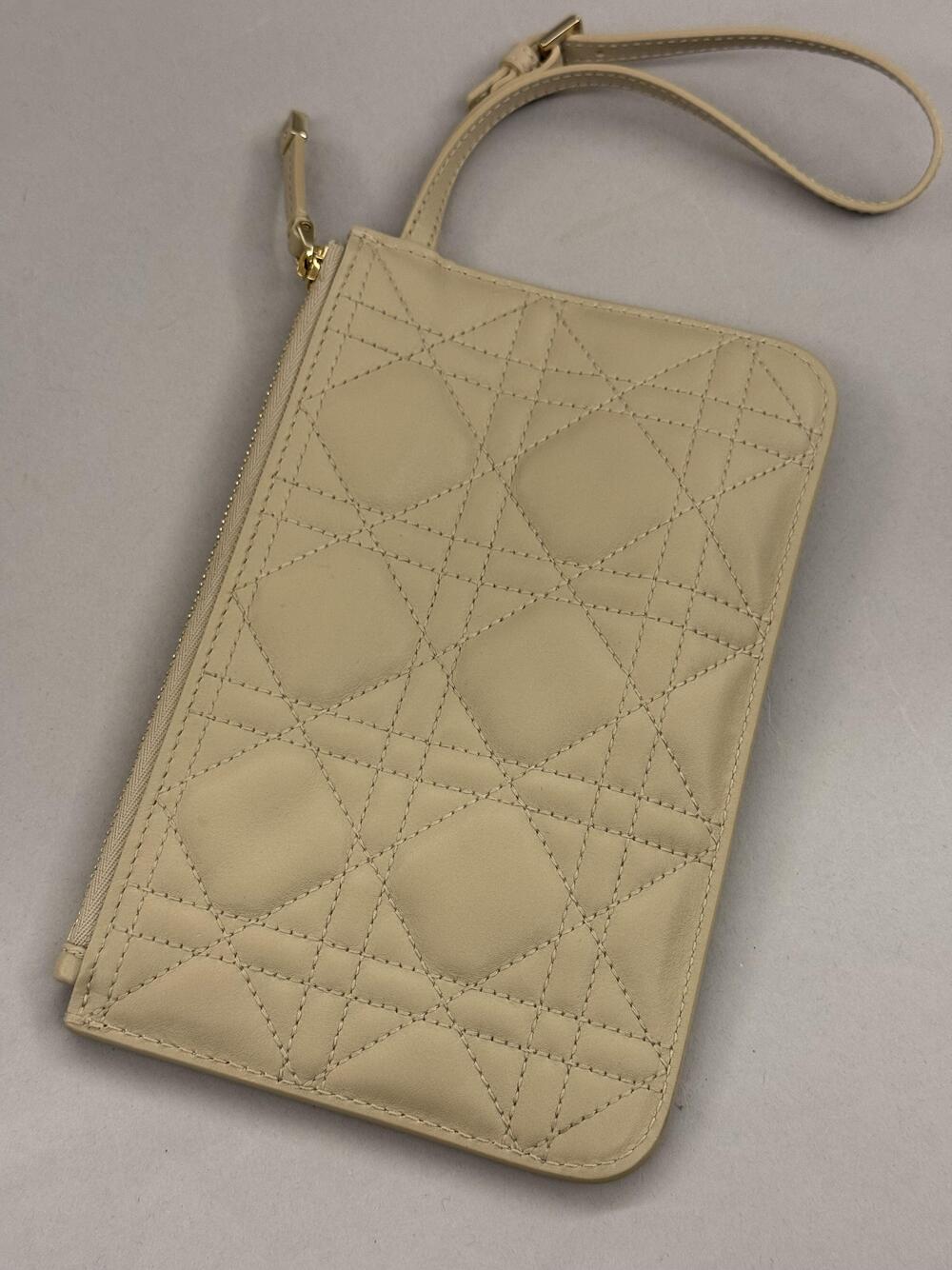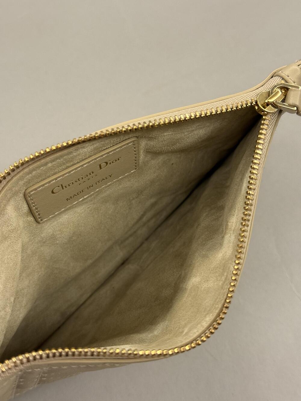 Dior Toujours veske i beige skinn med tilhørende clutch. Et stort rom inni. Nyprisen er 44000 kr!