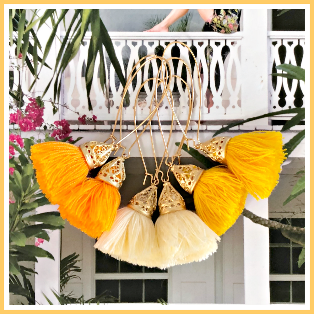 Utrolig morsomme og lette øredobber i glad bohemstil. Ca 8 cm lange.