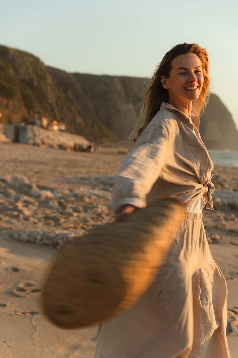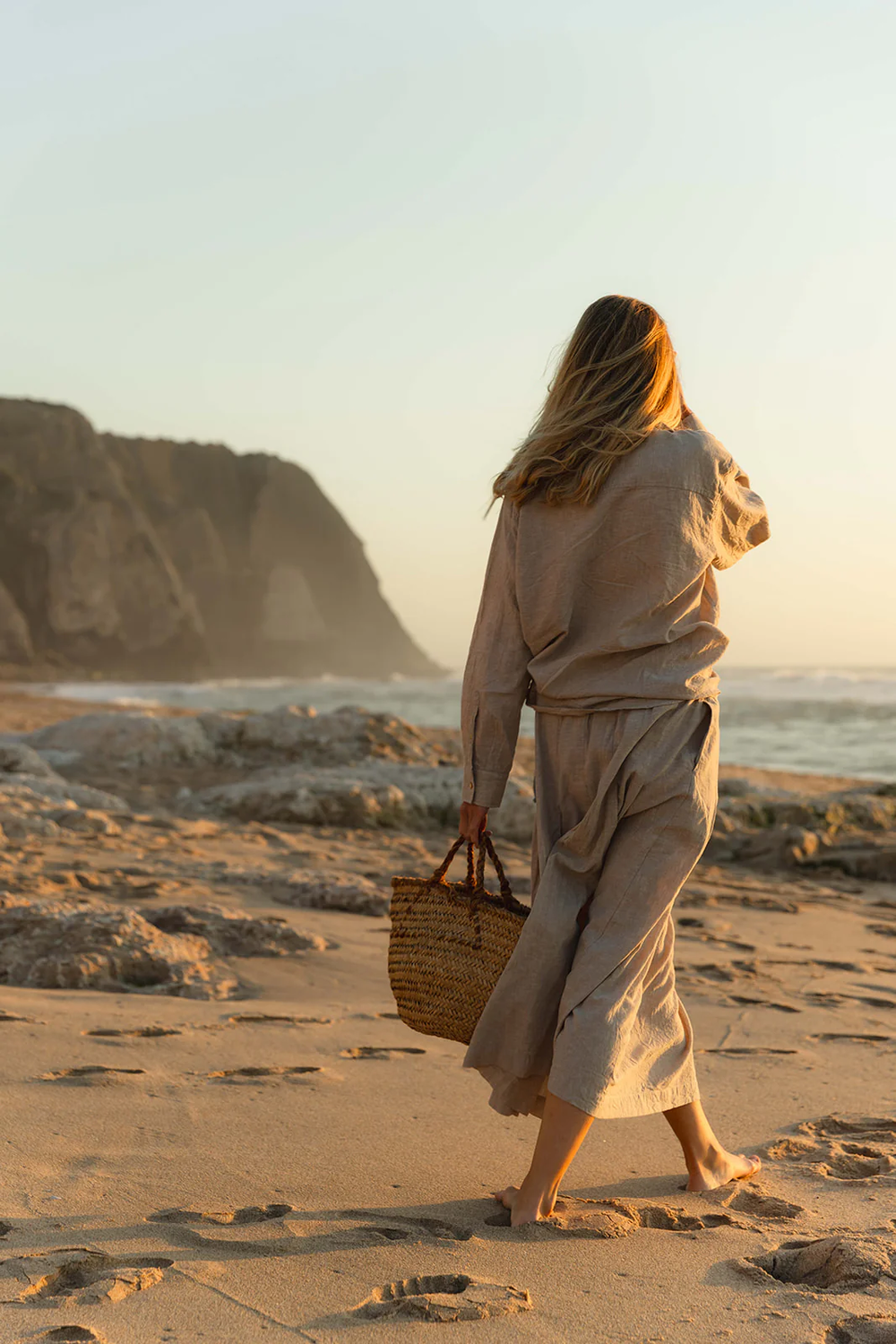Blue Dagfrid Cotton/linen Shirt Khaki Melange - Blue Sportswear