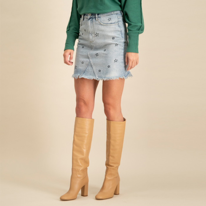 Hacinda Jeansskirt i lys blå med stjernedetaljer.