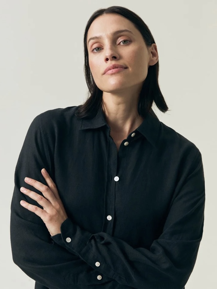 Denne lange skjortekjolen i lin fra Lexington har en tidløs og allsidig stil. Den har lange ermer, knappelukking foran og praktiske sidelommer. Slissene i siden gir god bevegelsesfrihet, mens et avtakbart belte i midjen gjør det mulig å tilpasse stylingen. En diskret etikett i sidesømmen gir en ekstra detalj. Denne kjolen er perfekt til både uformelle og pyntede anledninger, og kombinerer komfort med uanstrengt eleganse.