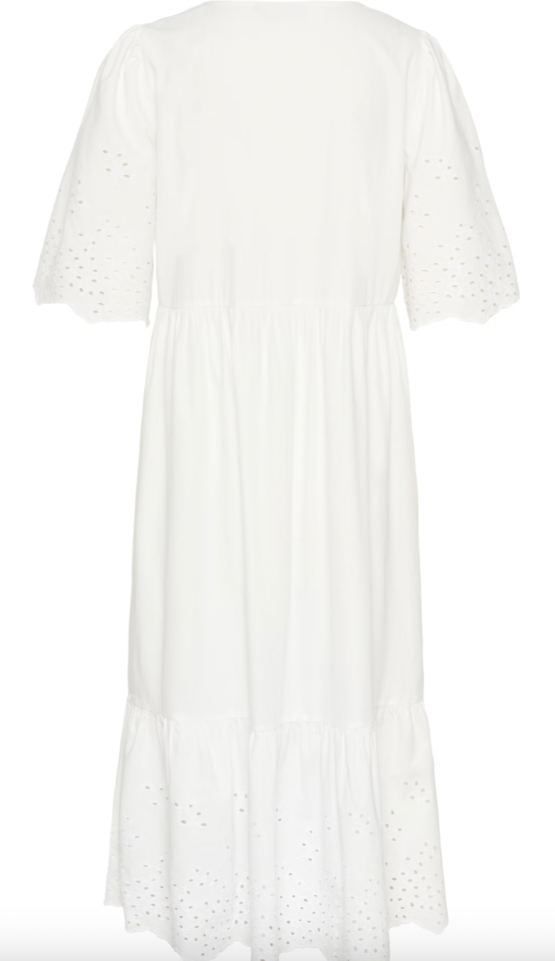 Kjolen har en løs passform, V-hals, og en midi lengde