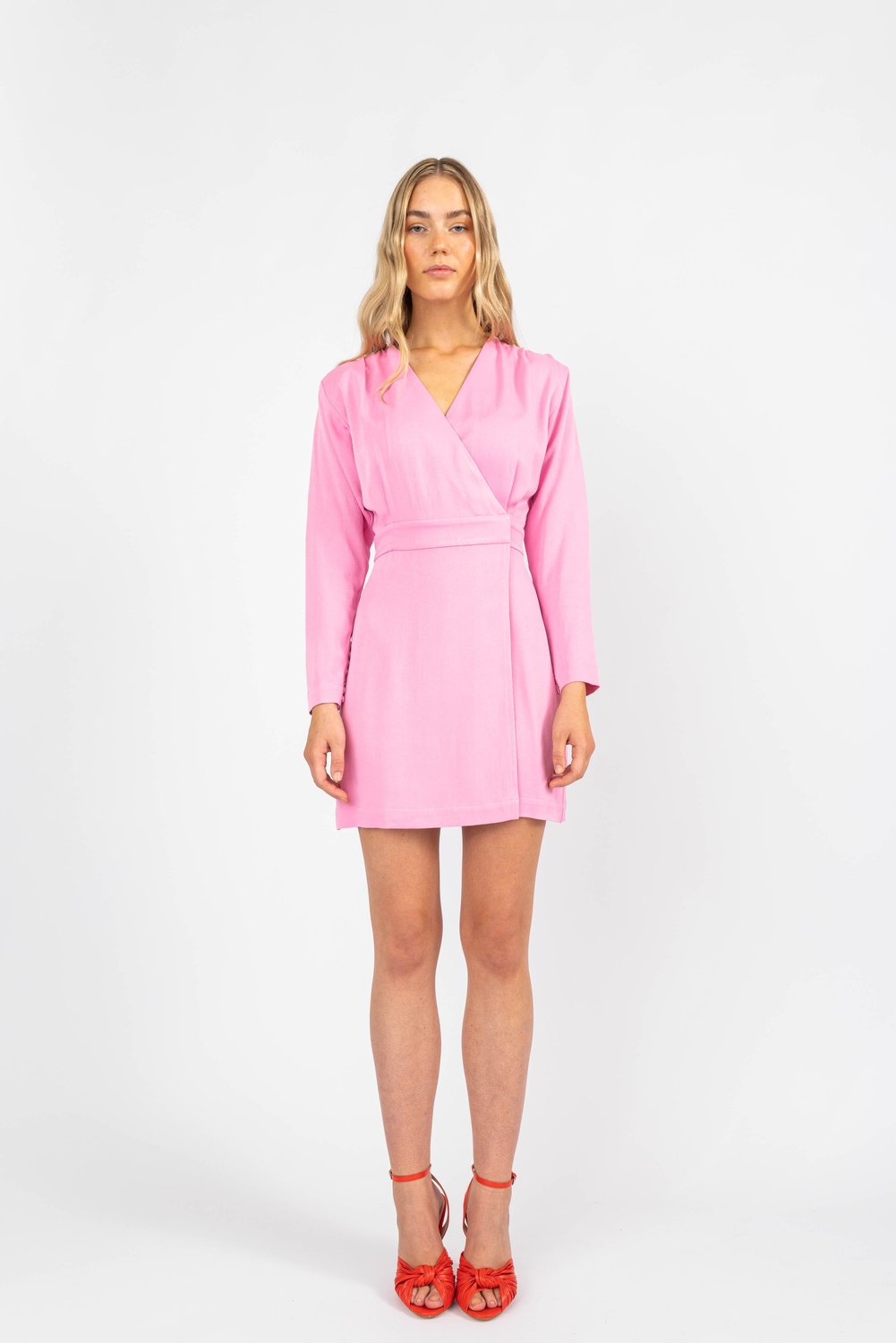 Superfin omslagskjole fra norske MAUD. Sanna Dress har lange ermer med definerte skuldre og V-hals. Den flatterende omslagssilhuetten gjør at du enkelt kan tilpasse passformen...Superfin omslagskjole fra norske MAUD. Sanna Dress har lange ermer med definerte skuldre og V-hals. Den flatterende omslagssilhuetten gjør at du enkelt kan tilpasse passformen på kjolen med knytebeltet i midjen. Den nydelige rosa fargen gjør kjolen perfekt til våren og sommerens fester.