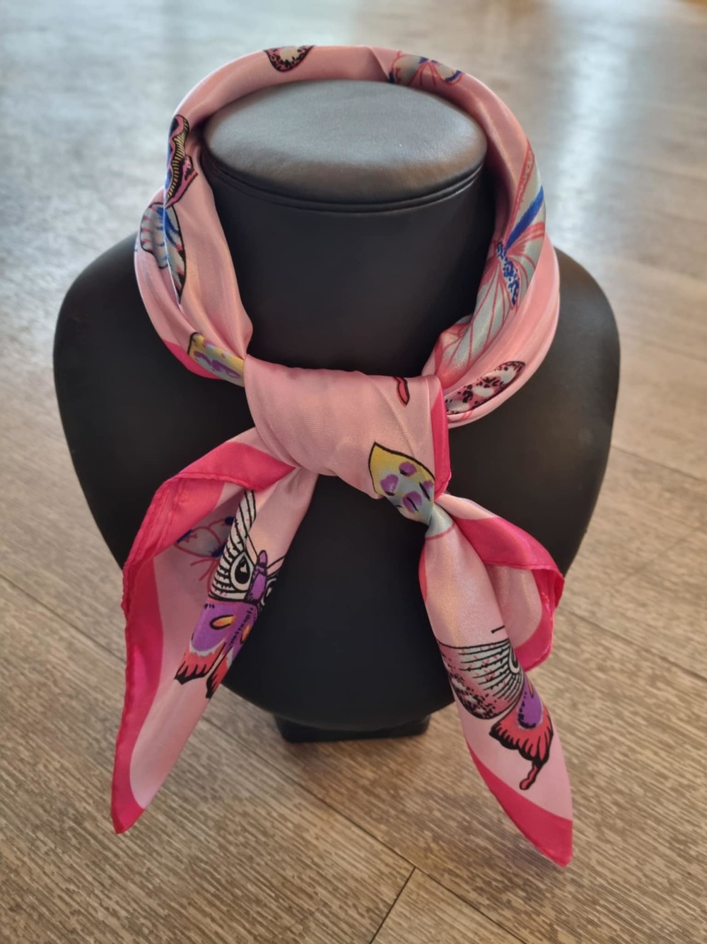 Silkeskjerf i mange farger og mønster. Fint tilbehør til både barne og dame festdrakt og bunad. Kjempefin til hverdag og fest. 60x60 cm Polyester/Satin.