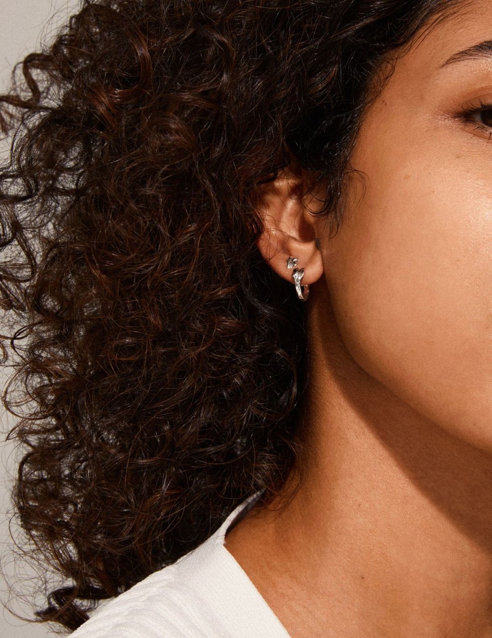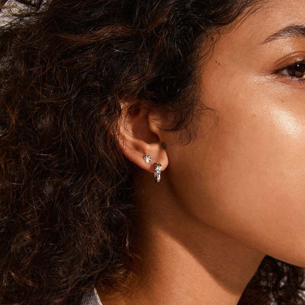 -2-i-1-sett huggie-hoops og ørestikker med håndlaget preg