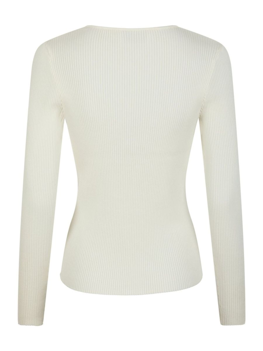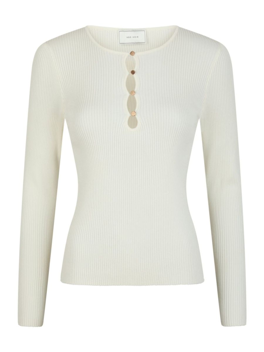 Enkel, genser i ribb kvalitet med gullknapper i utringingen.