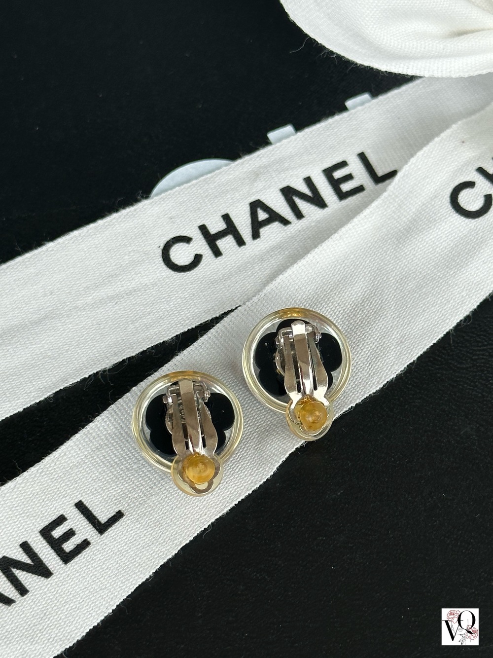 Chanel Camélia Round Clip on earrings i nydelig design, den anerkjente Camélia blomsten i svart og hvit med svart CC logo inni. De er lette...Chanel Camélia Round Clip on earrings i nydelig design, den anerkjente Camélia blomsten i svart og hvit med svart CC logo inni. De er lette og henger godt på.