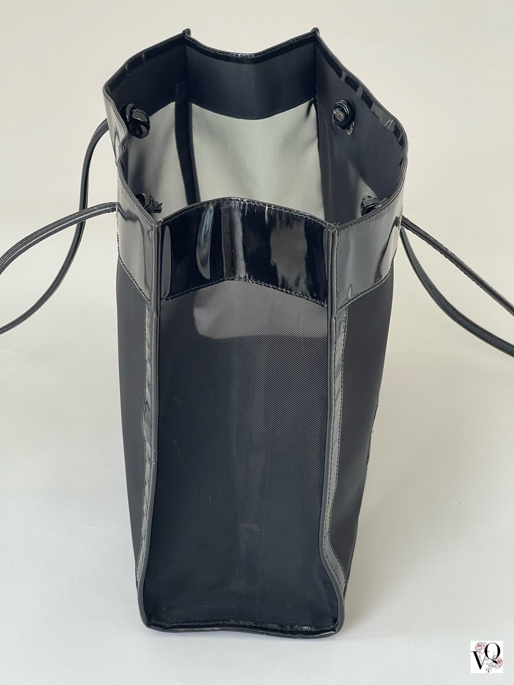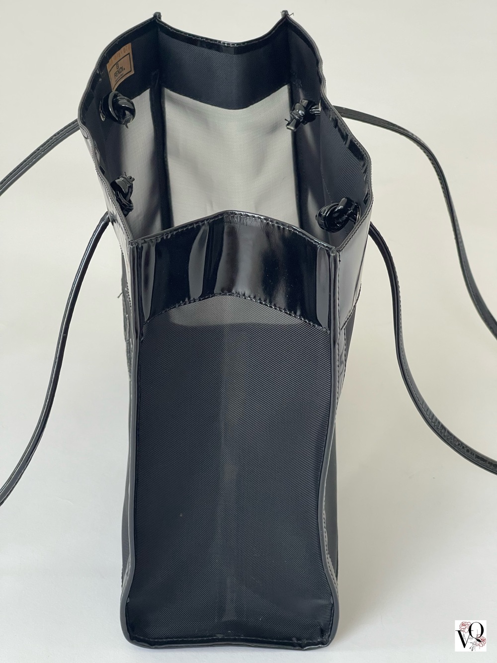 Den klassiske og stilfulle tote vesken fra Fendi i svart mesh og lakkert skinn. Den har et stort rom inni. Plass til Pc og det... Les mer