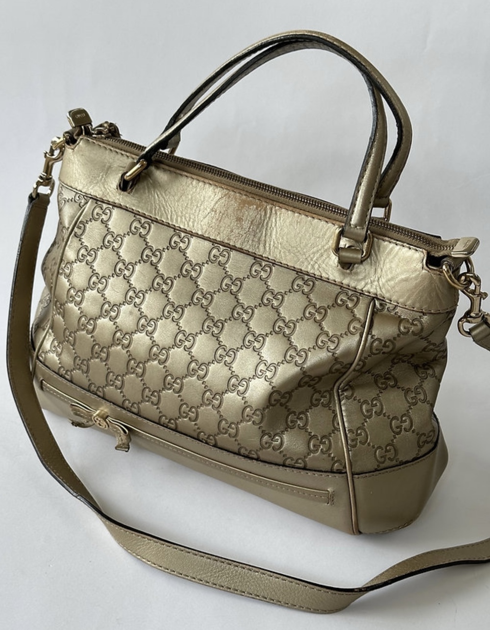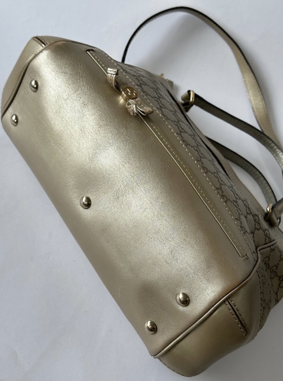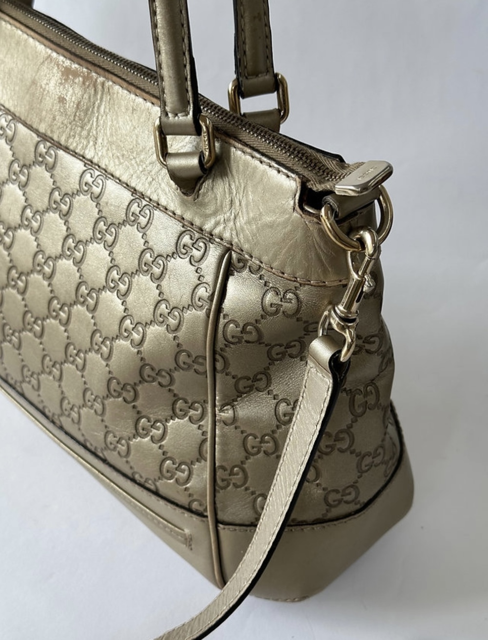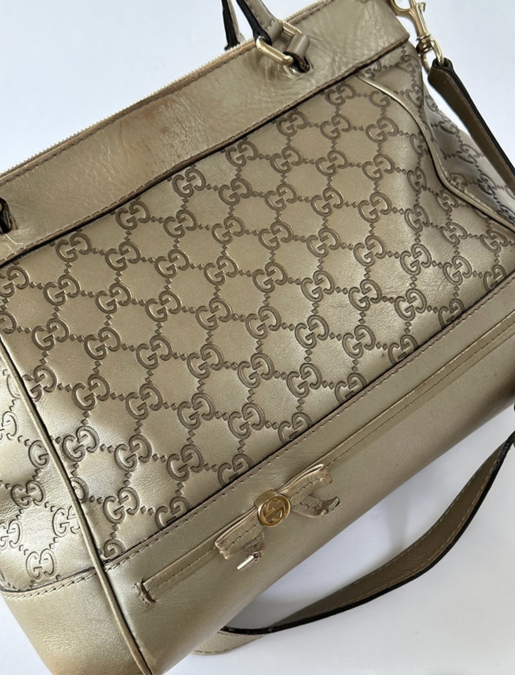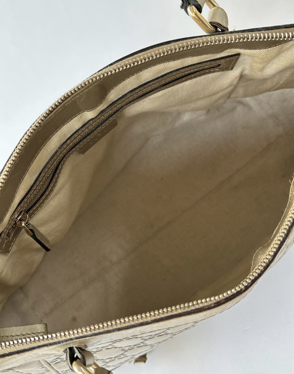 Vintage Gucci Guccissima veske i skinn med det klassiske GG mønsteret over det hele. Den har detaljer i gullfarge og beige stoff inni. Den har...Vintage Gucci Guccissima veske i skinn med det klassiske GG mønsteret over det hele. Den har detaljer i gullfarge og beige stoff inni. Den har et stort rom inni og et mindre rom med glidelås.