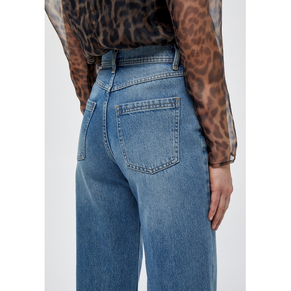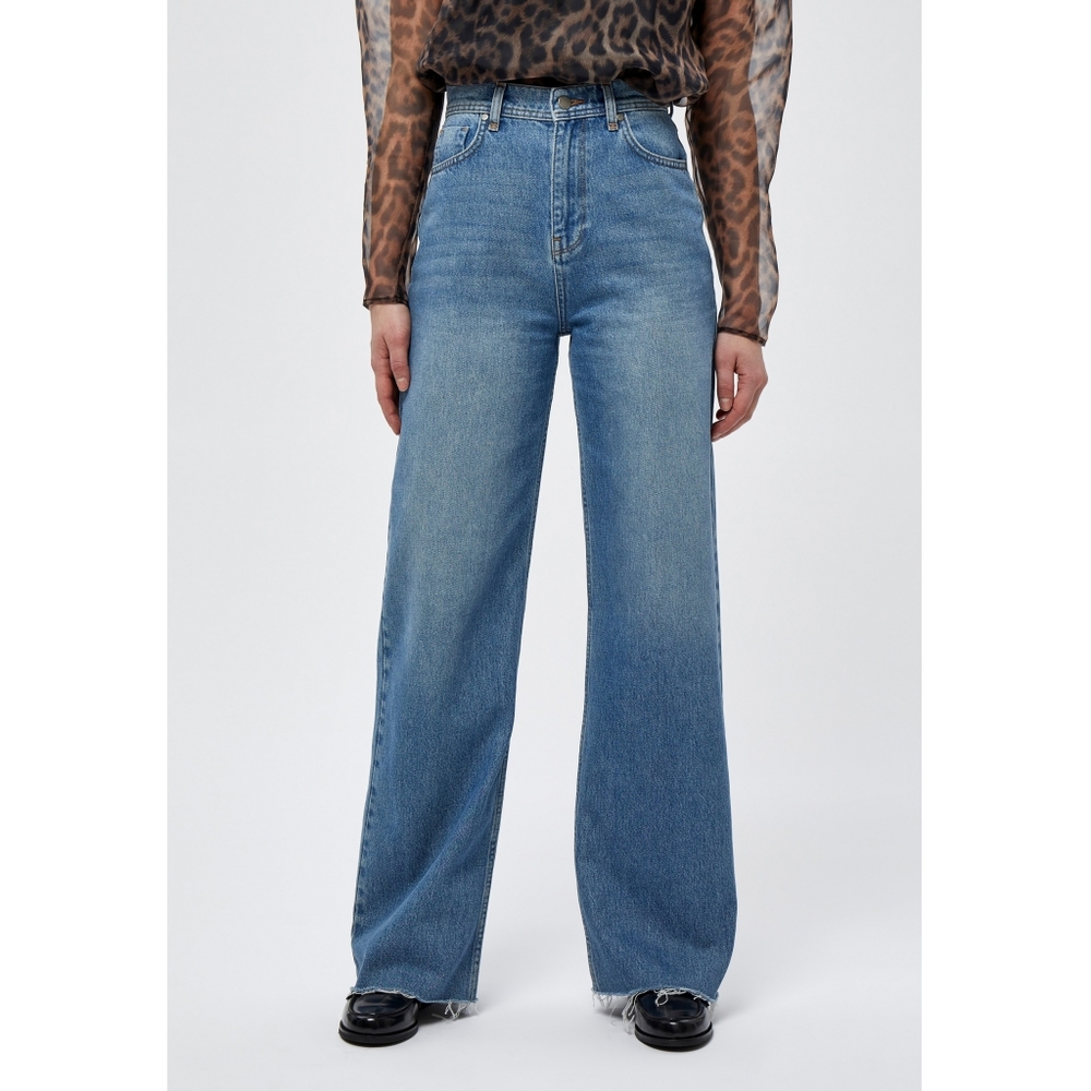 Tøff og moteriktig jeans frå Minus. Buksa har høgt liv og lange bein som går ut i sleng frå hoftene. Den avklipte avslutningen på beina...Tøff og moteriktig jeans frå Minus. Buksa har høgt liv og lange bein som går ut i sleng frå hoftene. Den avklipte avslutningen på beina gir ett røfft uttrykk, og gir mulighet for å justere lengden om den er for lang. Les mer