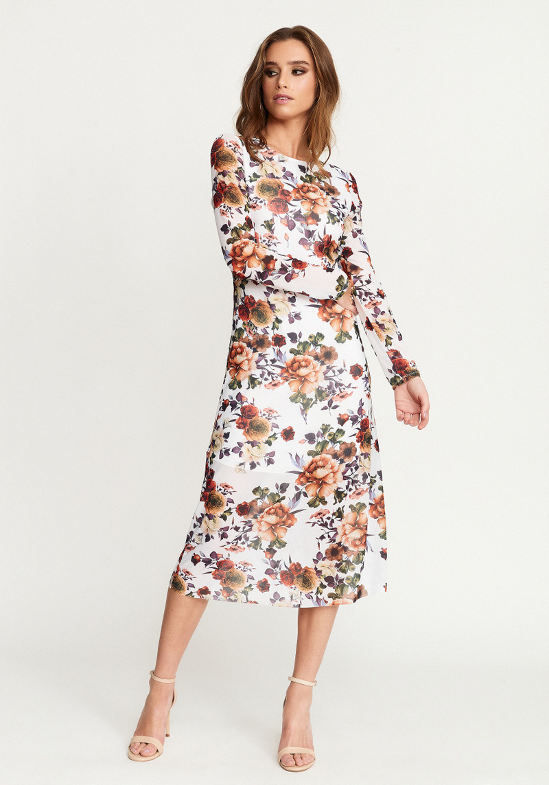 Nydelig blomstrete kjole i mesh med stretchy kvalitet.