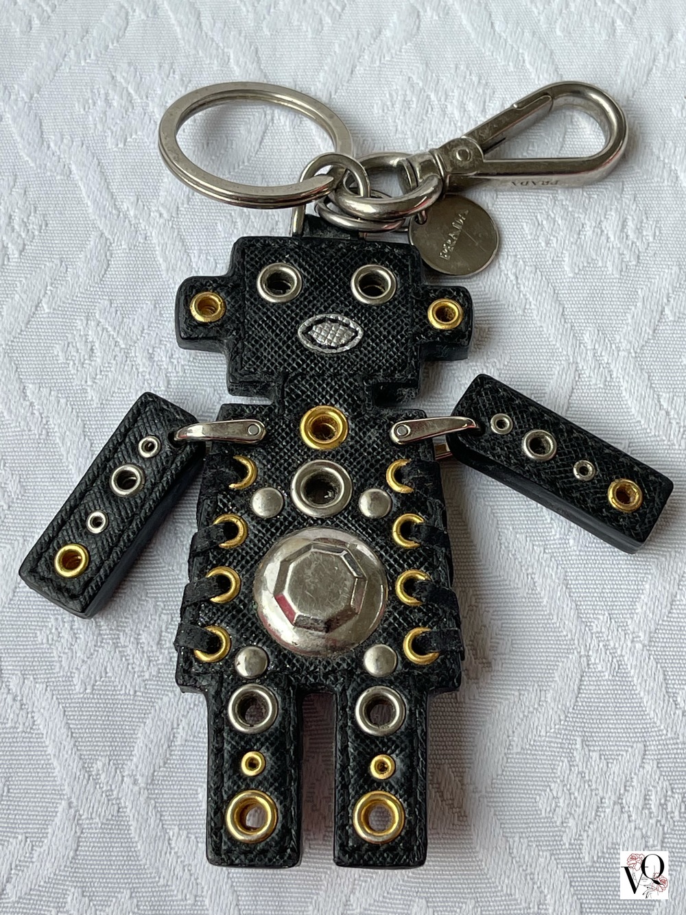 Mål: 16 cm høy, 7 cm lang og...Prada Bag Charm formet som en robot i svart med detaljer/hardware i gull/sølvfarge.